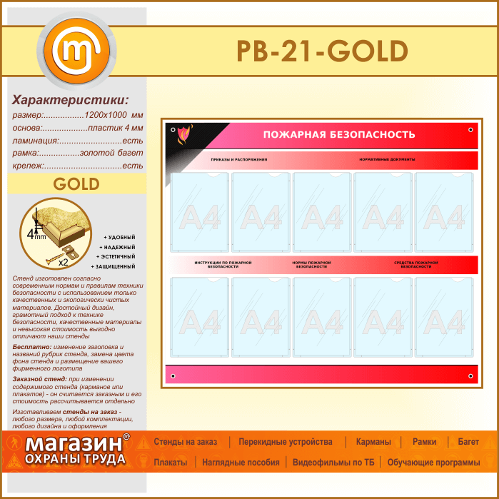 Стенд «Пожарная безопасность» с 10 карманами (PB-21-GOLD) в Сургуте купить