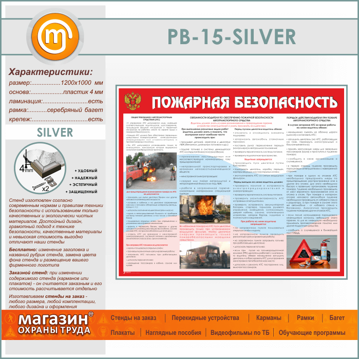 Стенд «Пожарная безопасность на автотранспорте» (PB-15-SILVER) в Сургуте купить