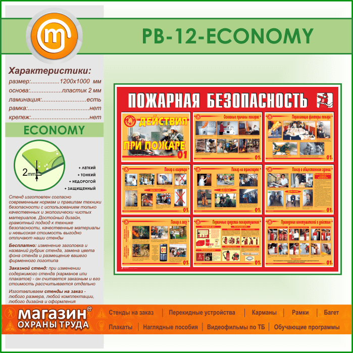 Стенд «Пожарная безопасность. Действия при пожаре» (PB-12-ECONOMY) в Сургуте купить
