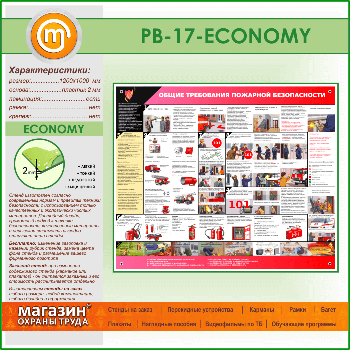 Стенд «Общие требования пожарной безопасности» (PB-17-ECONOMY) в Сургуте купить