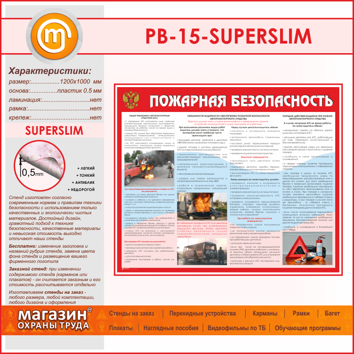 Стенд «Пожарная безопасность на автотранспорте» (PB-15-SUPERSLIM) в Сургуте купить