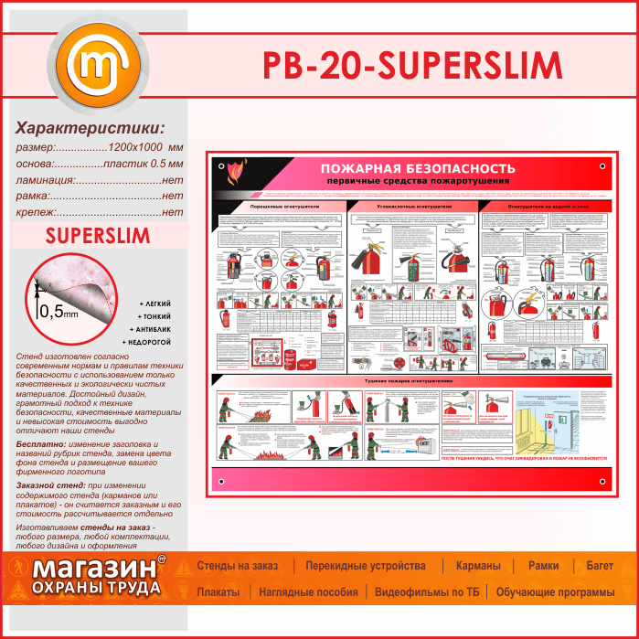 Стенд «Пожарная безопасность. Первичные средства пожаротушения» (PB-20-SUPERSLIM) в Сургуте купить