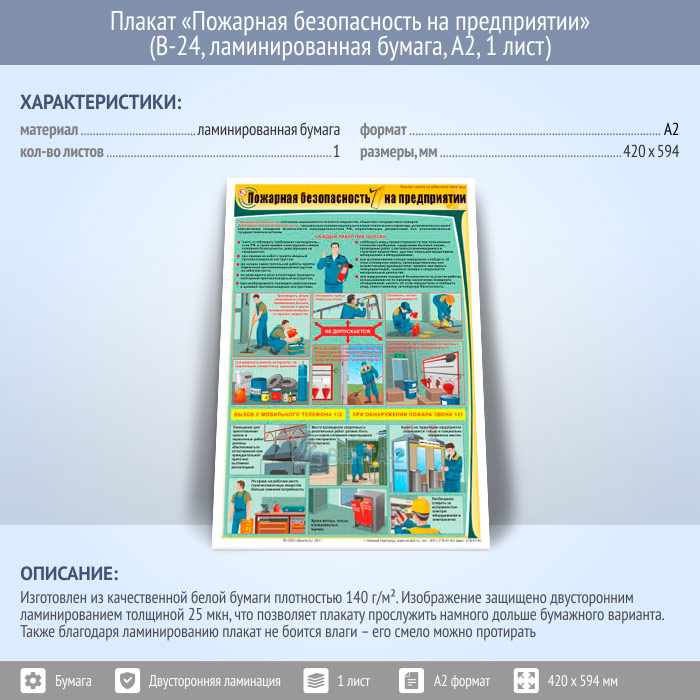 Плакат «Пожарная безопасность на предприятии» (В-24, ламинированная бумага, А2, 1 лист) в Сургуте купить