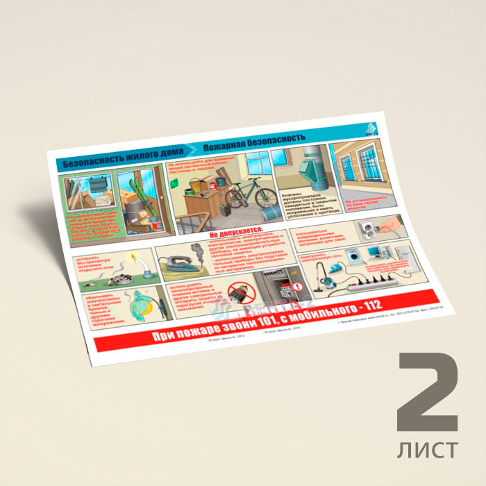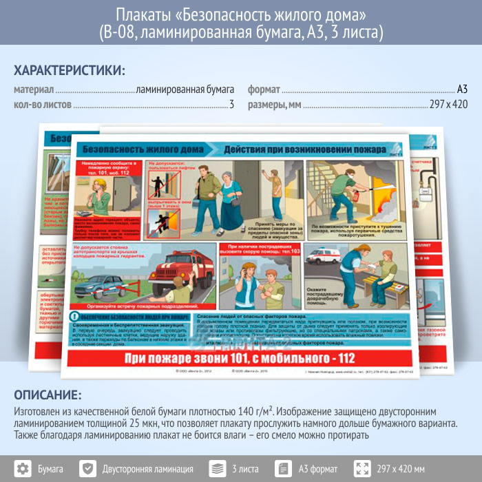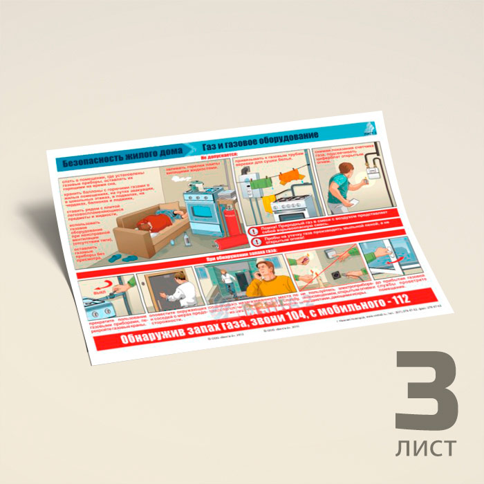 Плакаты «Безопасность жилого дома» (пожарная безопасность, газ и газовое оборудование, действия при возникновении пожара) (В-08, ламинированная бумага, А3, 3 листа) в Сургуте купить