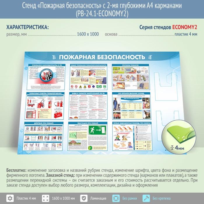 Стенд «Пожарная безопасность» с 2-мя глубокими А4 карманами (PB-24.1-ECONOMY2) в Сургуте купить