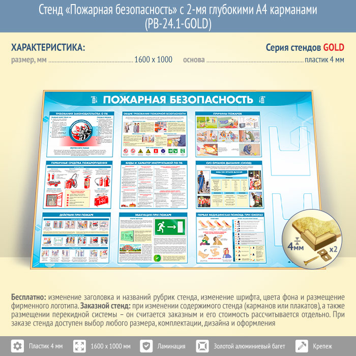 Стенд «Пожарная безопасность» с 2-мя глубокими А4 карманами (PB-24.1-GOLD) в Сургуте купить