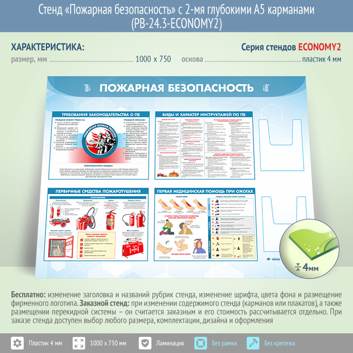 Стенд «Пожарная безопасность» с 2-мя глубокими А5 карманами (PB-24.3-ECONOMY2) в Сургуте купить