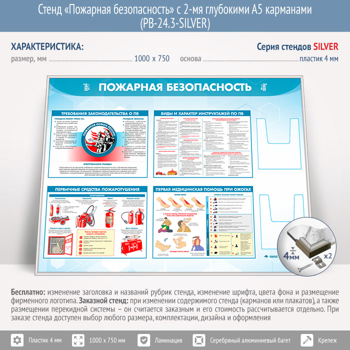 Стенд «Пожарная безопасность» с 2-мя глубокими А5 карманами (PB-24.3-SILVER) в Сургуте купить