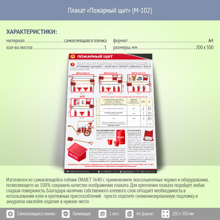 Плакат «Пожарный щит» (М-102, самоклеящаяся пленка, А4, 1 лист) в Сургуте купить