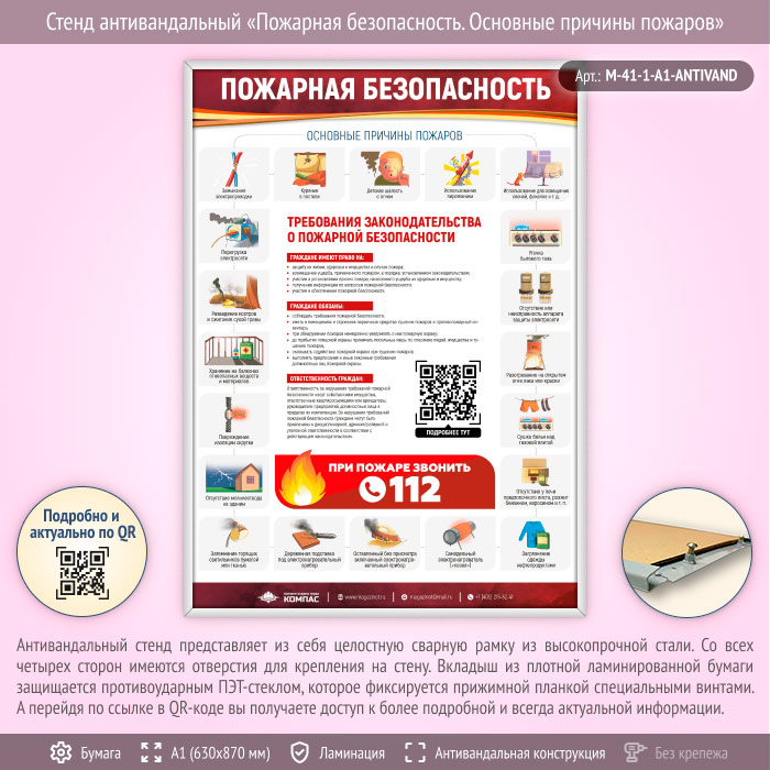 Стенд антивандальный «Пожарная безопасность. Основные причины пожаров» (M-41-1-А1-ANTIVAND) в Сургуте купить