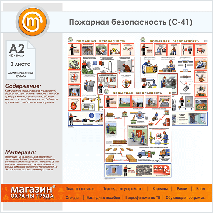 Плакаты «Пожарная безопасность» (С-41, ламинированная бумага, А2, 3 листа) в Сургуте купить