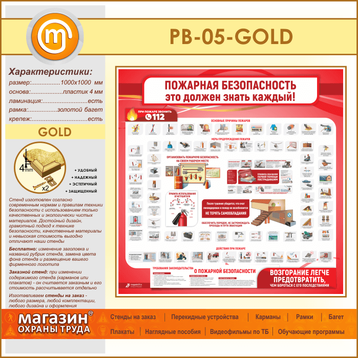 Стенд «Пожарная безопасность. Это должен знать каждый» (PB-05-GOLD) в Сургуте купить