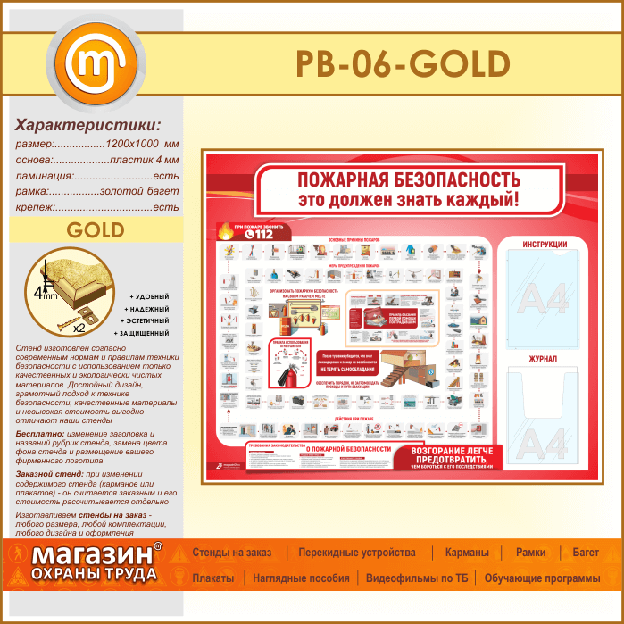 Стенд «Пожарная безопасность. Это должен знать каждый» с плоским и объемным карманами (PB-06-GOLD) в Сургуте купить