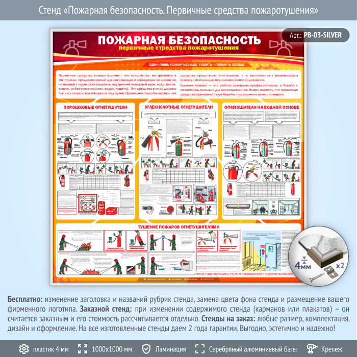 Стенд «Пожарная безопасность. Первичные средства пожаротушения» (PB-03-SILVER) в Сургуте купить