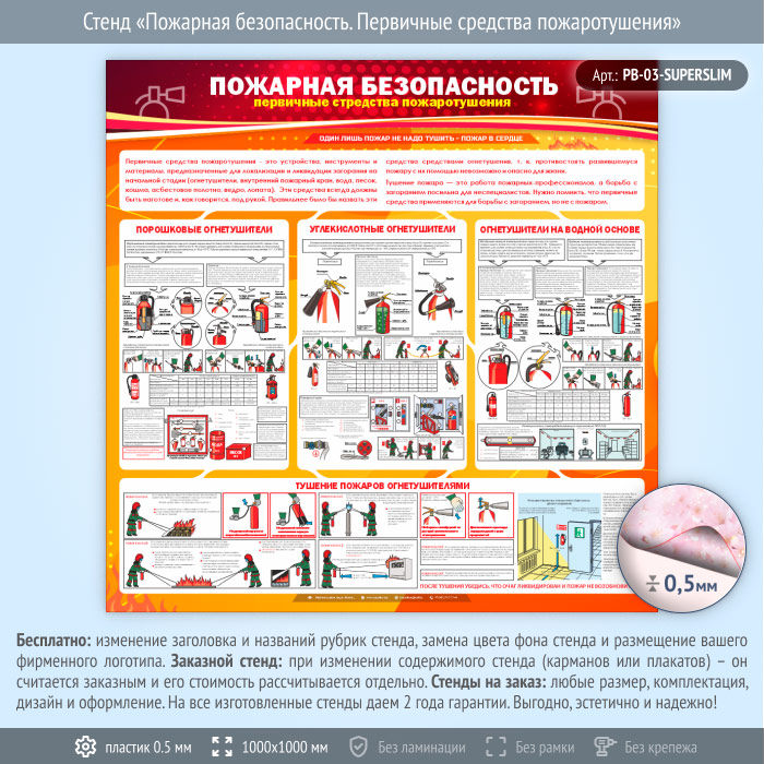 Стенд «Пожарная безопасность. Первичные средства пожаротушения» (PB-03-SUPERSLIM) в Сургуте купить