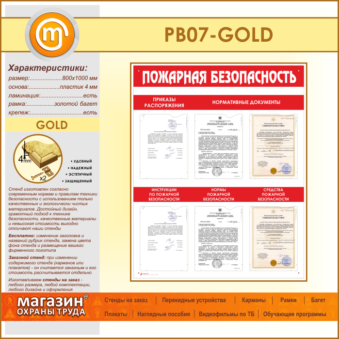 Стенд «Пожарная безопасность» с 6 карманами (PB-07-GOLD) в Сургуте купить