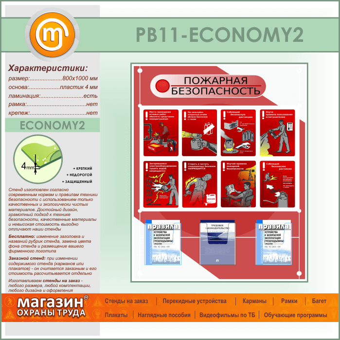 Стенд «Стенд пожарная безопасность в строительстве» с 3 объемными карманами (PB-11-ECONOMY2) в Сургуте купить