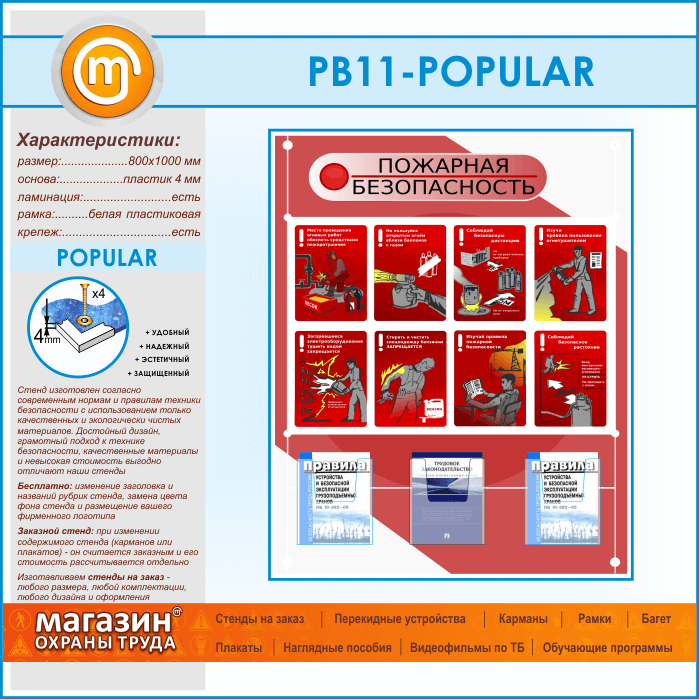 Стенд «Стенд пожарная безопасность в строительстве» с 3 объемными карманами (PB-11-POPULAR) в Сургуте купить