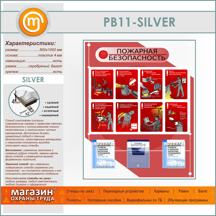 Стенд «Стенд пожарная безопасность в строительстве» с 3 объемными карманами (PB-11-SILVER) в Сургуте купить