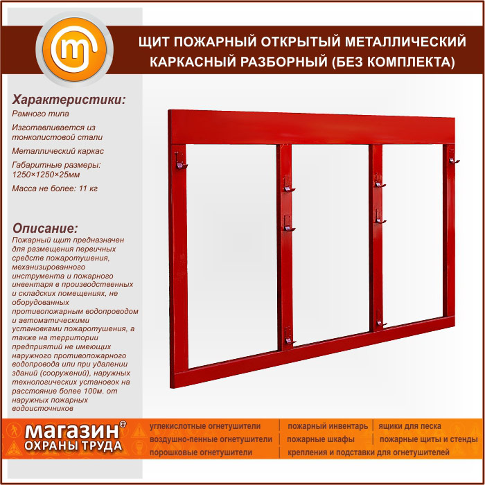 Щит пожарный открытый металлический каркасный разборный (без комплекта) в Сургуте купить
