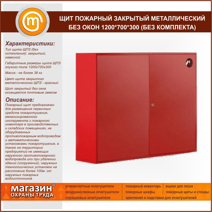 Щит пожарный закрытый металлический без окон 1200*700*300 (без комплекта) в Сургуте купить