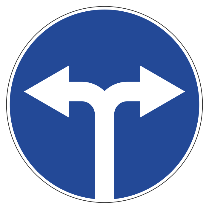 Дорожный знак 4.1.6 «Движение направо или налево» (металл 0,8 мм, III типоразмер: диаметр 900 мм, С/О пленка: тип Б высокоинтенсивная) в Сургуте купить