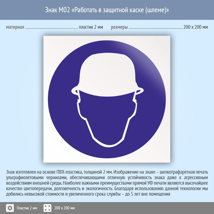 Знак M02 «Работать в защитной каске (шлеме)» (пластик, 200х200 мм) в Сургуте купить
