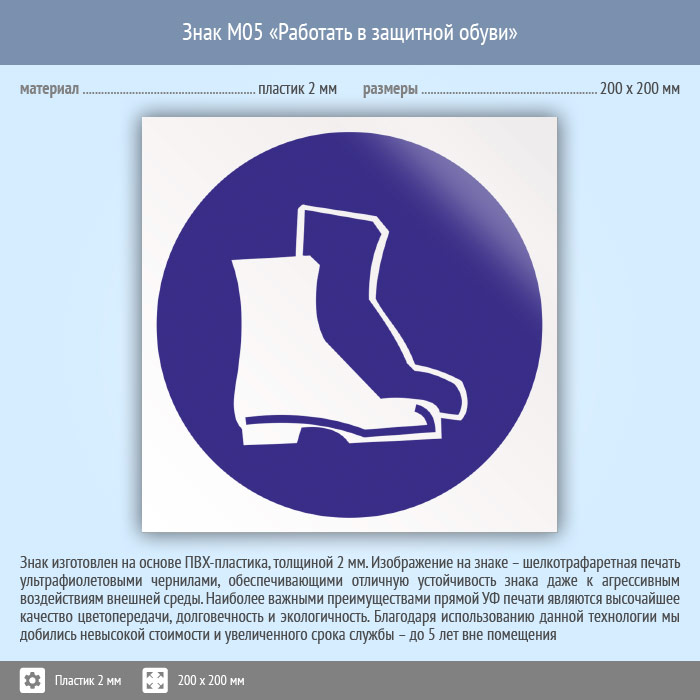 Знак M05 «Работать в защитной обуви» (пластик, 200х200 мм) в Сургуте купить