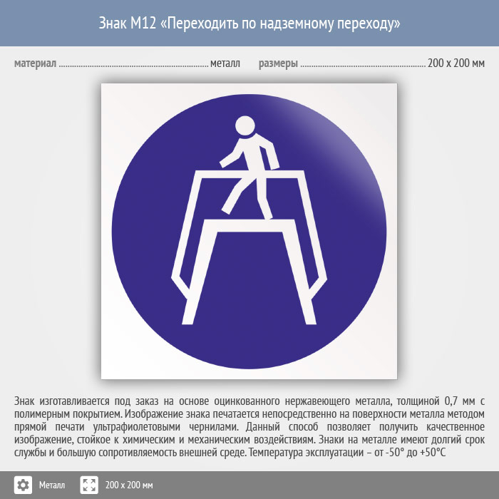 Знак M12 «Переходить по надземному переходу» (металл, 200х200 мм) в Сургуте купить