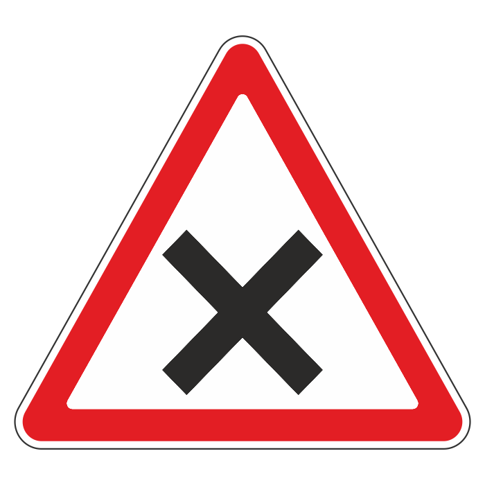 Дорожный знак 1.6 «Пересечение равнозначных дорог» (металл 0,8 мм, I типоразмер: сторона 700 мм, С/О пленка: тип А инженерная) в Сургуте купить