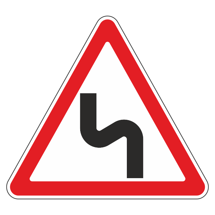 Дорожный знак 1.12.2 «Опасные повороты с первым поворотом налево» (металл 0,8 мм, III типоразмер: сторона 1200 мм, С/О пленка: тип А коммерческая) в Сургуте купить