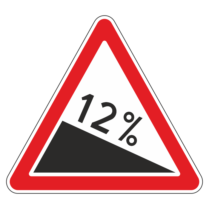 Дорожный знак 1.13 «Крутой спуск» (металл 0,8 мм, III типоразмер: сторона 1200 мм, С/О пленка: тип Б высокоинтенсивная) в Сургуте купить