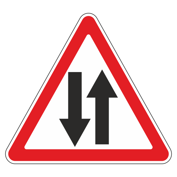 Дорожный знак 1.21 «Двустороннее движение» (металл 0,8 мм, I типоразмер: сторона 700 мм, С/О пленка: тип Б высокоинтенсивная) в Сургуте купить