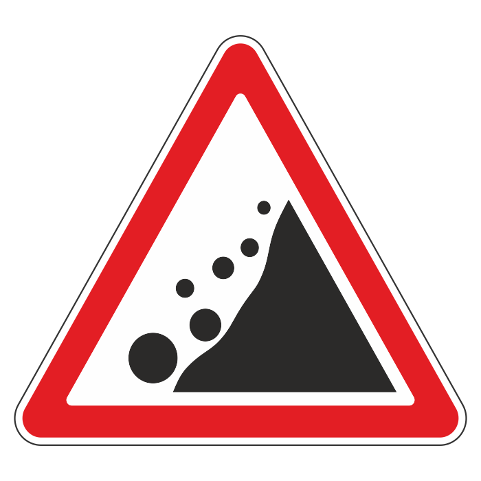 Дорожный знак 1.28 «Падение камней» (металл 0,8 мм, III типоразмер: сторона 1200 мм, С/О пленка: тип В алмазная) в Сургуте купить