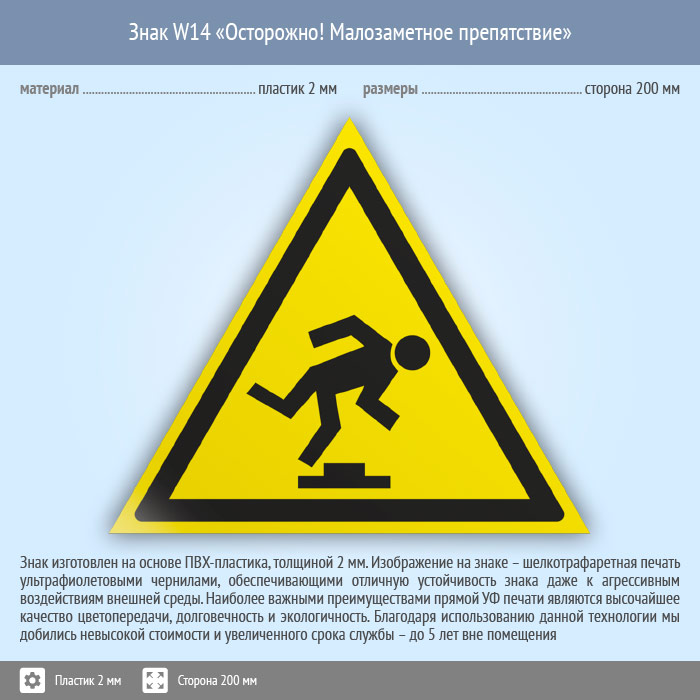 Знак W14 «Осторожно! малозаметное препятствие» (пластик, сторона 200 мм) в Сургуте купить