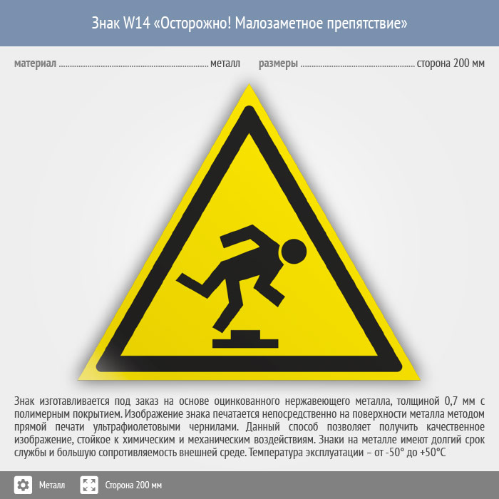 Знак W14 «Осторожно! малозаметное препятствие» (металл, сторона 200 мм) в Сургуте купить