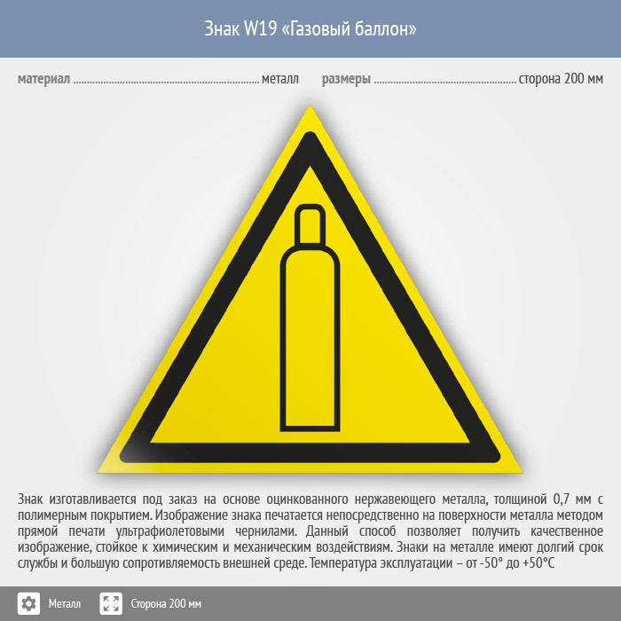 Знак W19 «Газовый баллон» (металл, сторона 200 мм) в Сургуте купить