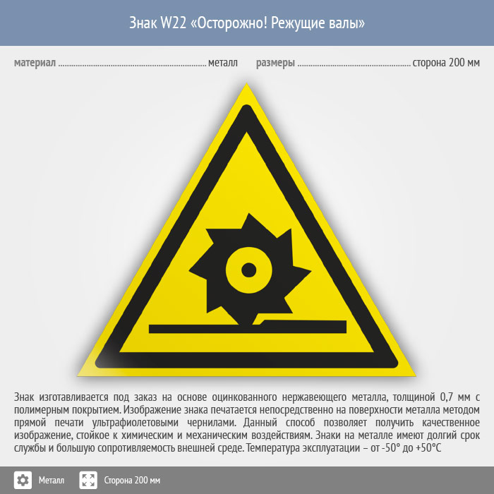 Знак W22 «Осторожно! режущие валы» (металл, сторона 200 мм) в Сургуте купить