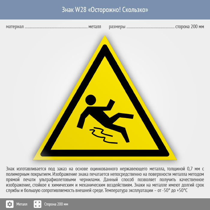Знак W28 «Осторожно! скользко» (металл, сторона 200 мм) в Сургуте купить