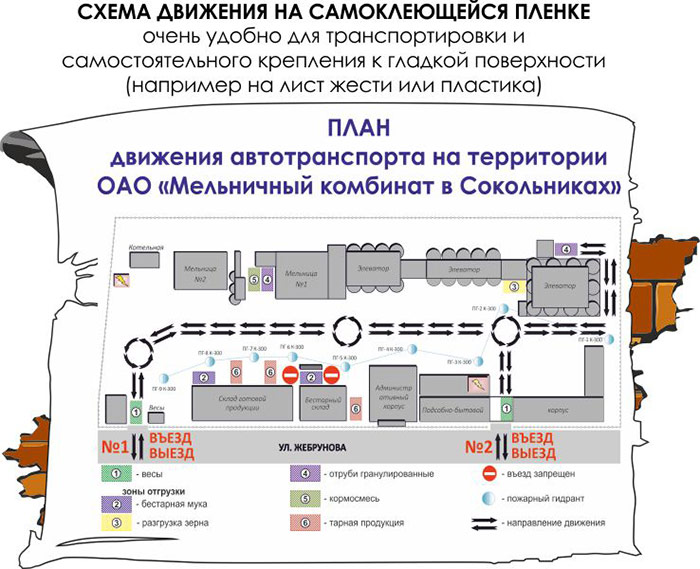 Схема движения автотранспорта (1500х1000 мм, самоклеящаяся плёнка) в Сургуте купить