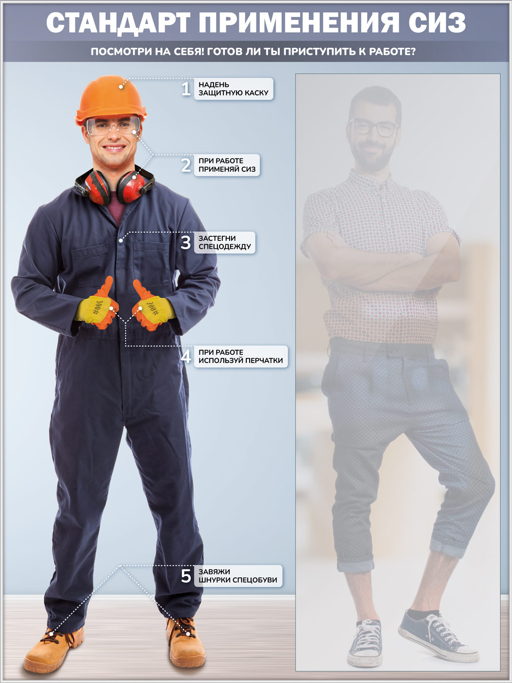 Стенд для демонстрации применения СИЗ с зеркалом, 1500х2000 мм в серебряном багете (СПС-01-С) в Сургуте купить