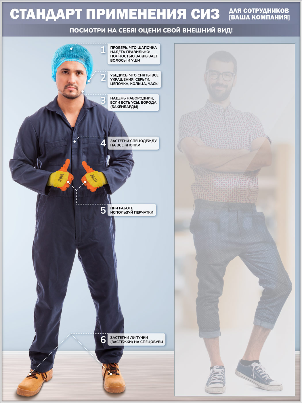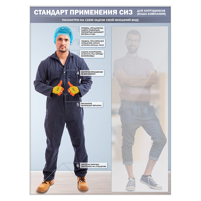 Стенд для демонстрации применения СИЗ с зеркалом, 1500х2000 мм в серебряном багете (СПС-02-С) в Сургуте купить