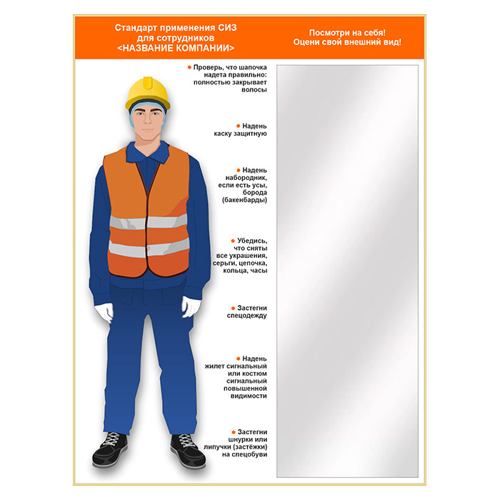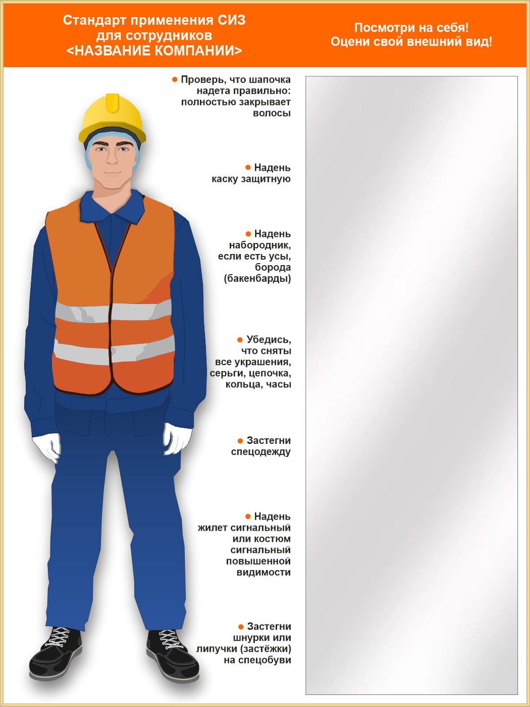 Стенд для демонстрации применения СИЗ с зеркалом, 1500х2000 мм в золотом багете (СПС-02.2-З) в Сургуте купить