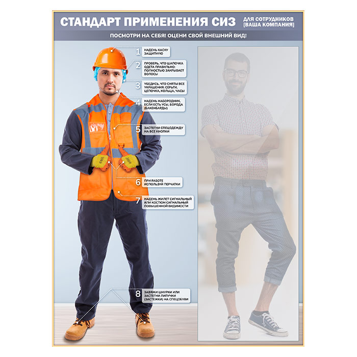 Стенд для демонстрации применения СИЗ с зеркалом, 1500х2000 мм в золотом багете (СПС-03-З) в Сургуте купить