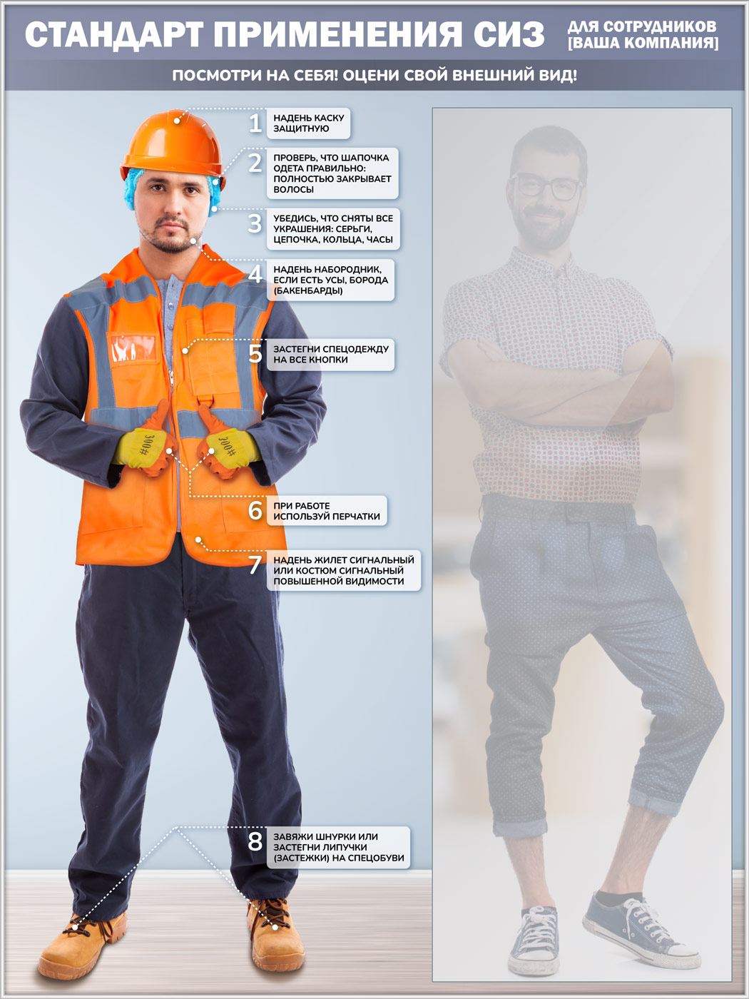 Стенд для демонстрации применения СИЗ с зеркалом, 1500х2000 мм в серебряном багете (СПС-03-С) в Сургуте купить