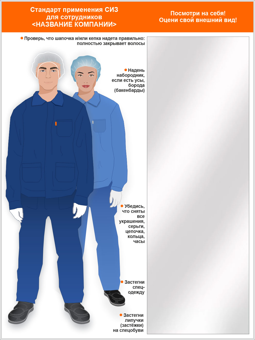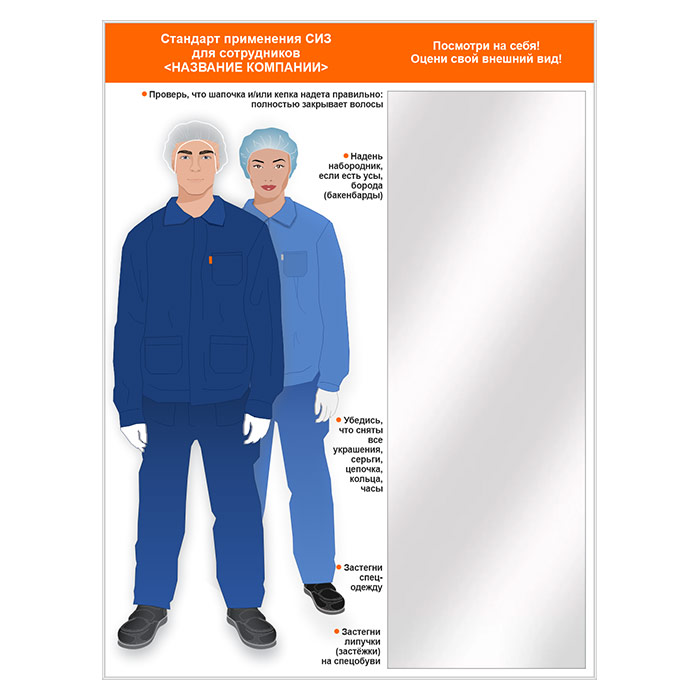 Стенд для демонстрации применения СИЗ с зеркалом, 1500х2000 мм в серебряном багете (СПС-04.2-С) в Сургуте купить