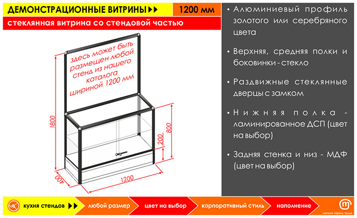 Стеклянная витрина со стендовой частью, 1200 мм в Сургуте купить