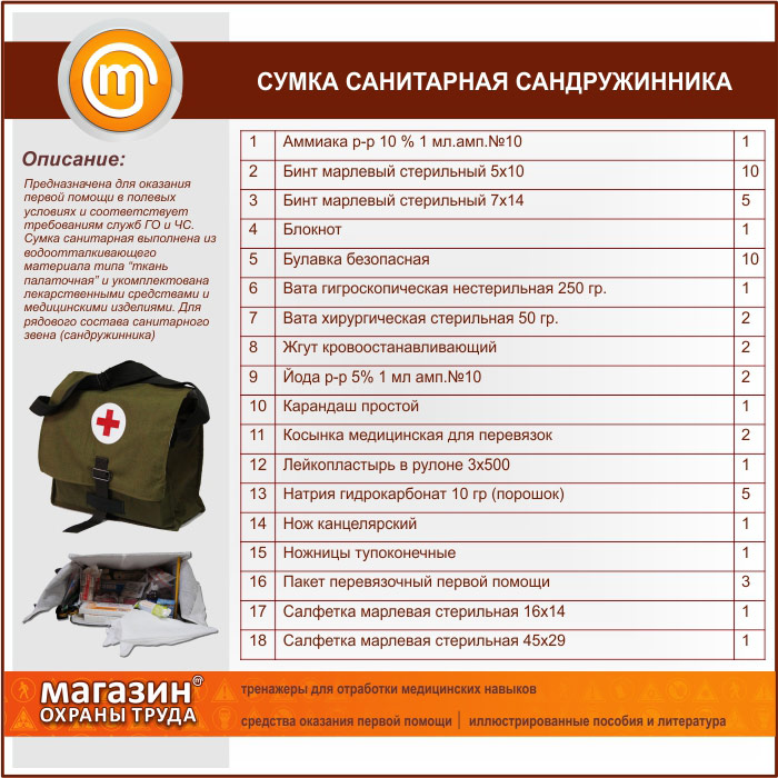 Сумка санитарная для оказания первой помощи подразделениям сил ГО (приказ № 61н от 08.02.2013г.) | Сумка санитарная для оказания первой помощи подразделениям сил ГО (приказ № 61н от 08.02.2013г.) |