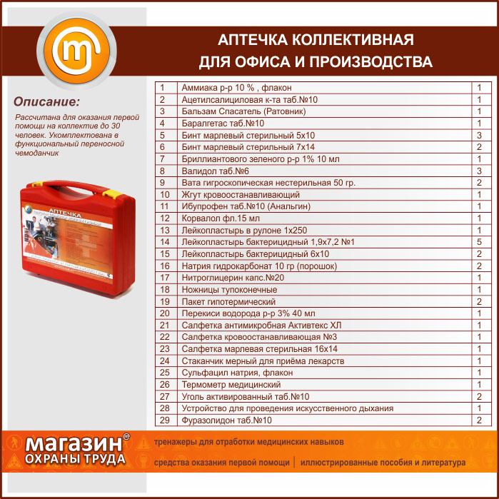 Аптечка КОЛЛЕКТИВНАЯ для офиса и производства (до 30 человек) - пластиковый чемодан в Сургуте купить