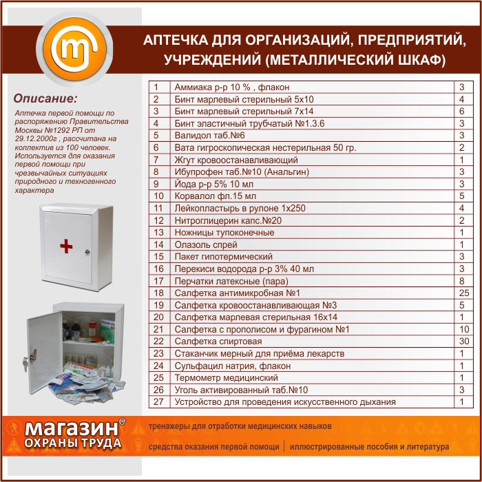 Аптечка для организаций, предприятий и учреждений (на 100 человек) - металлический шкаф в Сургуте купить